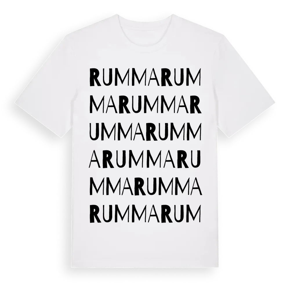 En ordlek byggd på Rummas namn. Subtilt och klurig – ett motiv som bara de som verkligen känner platsen fullt ut förstår. Premium bomull, unisex – från byn Rumma i Östergötlands län.