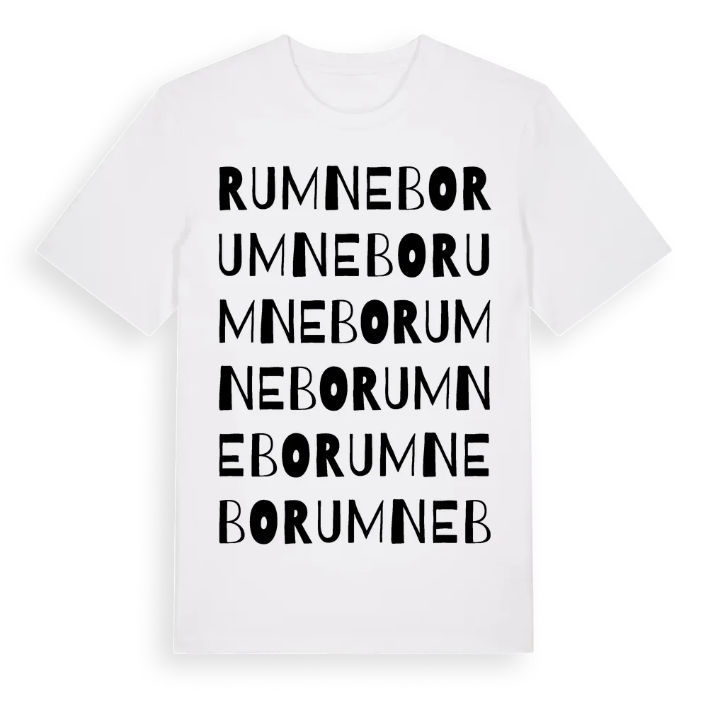 Rumnebo ordlek t-shirt är inspirerad av Rumnebo i Östergötlands län, Sverige. Tröjan är designad för dig som har en speciell koppling till platsen – oavsett om du bor här, har rötterna här eller bara älskar Rumnebo.