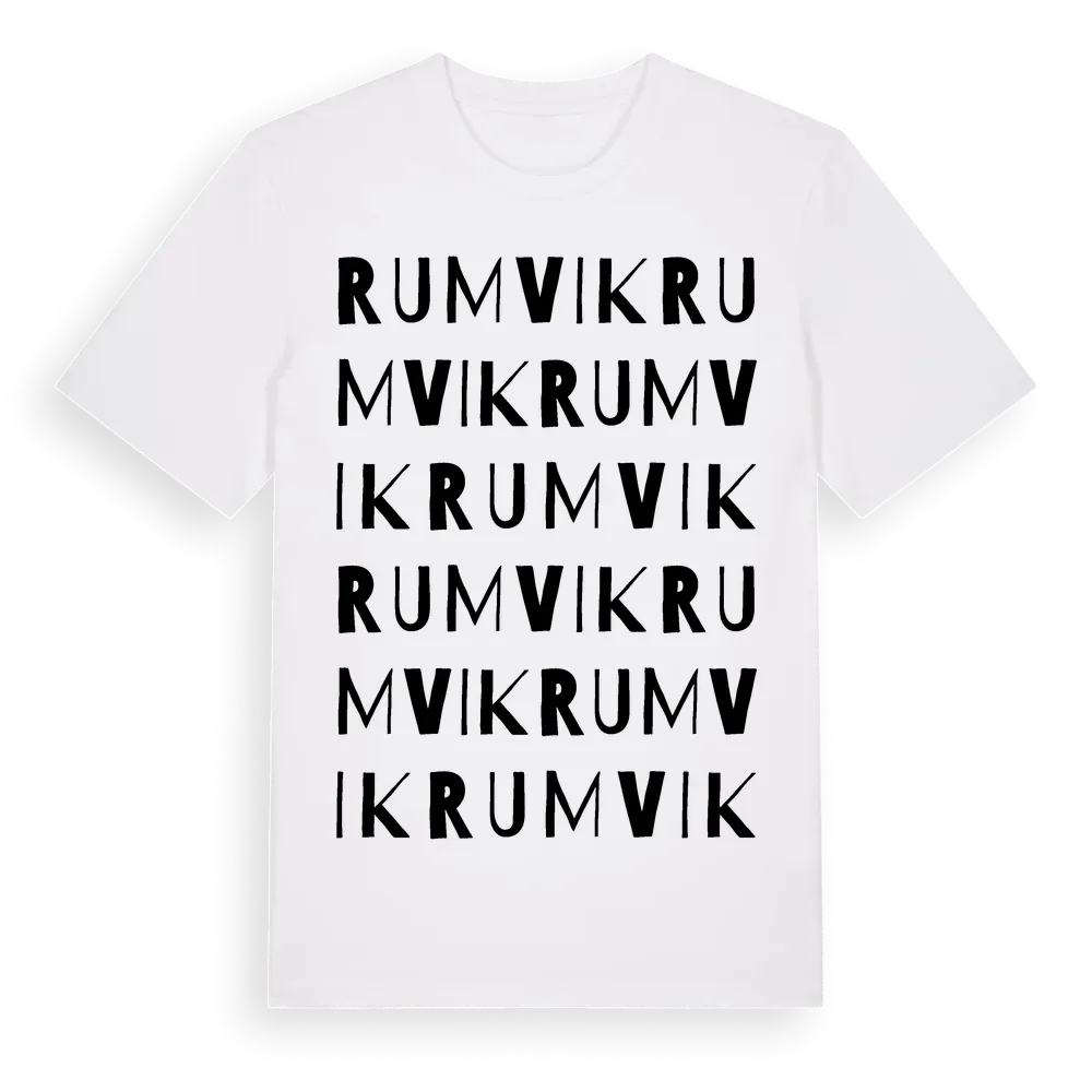 Rumvik ordlek t-shirt är inspirerad av Rumvik i Östergötlands län, Sverige. Tröjan är designad för dig som har en speciell koppling till platsen – oavsett om du bor här, har rötterna här eller bara älskar Rumvik.