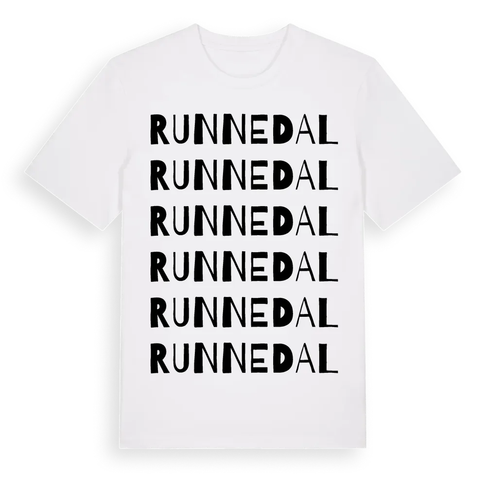 Runnedal ordlek t-shirt är inspirerad av Runnedal i Östergötlands län, Sverige. Tröjan är designad för dig som har en speciell koppling till platsen – oavsett om du bor här, har rötterna här eller bara älskar Runnedal.