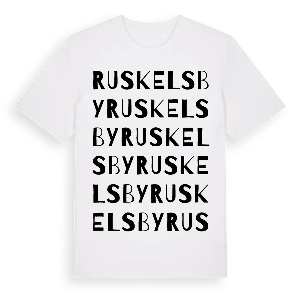 Ruskelsby ordlek t-shirt är inspirerad av byn Ruskelsby i Östergötlands län, Sverige. Tröjan är designad för dig som har en speciell koppling till platsen – oavsett om du bor här, har rötterna här eller bara älskar Ruskelsby.