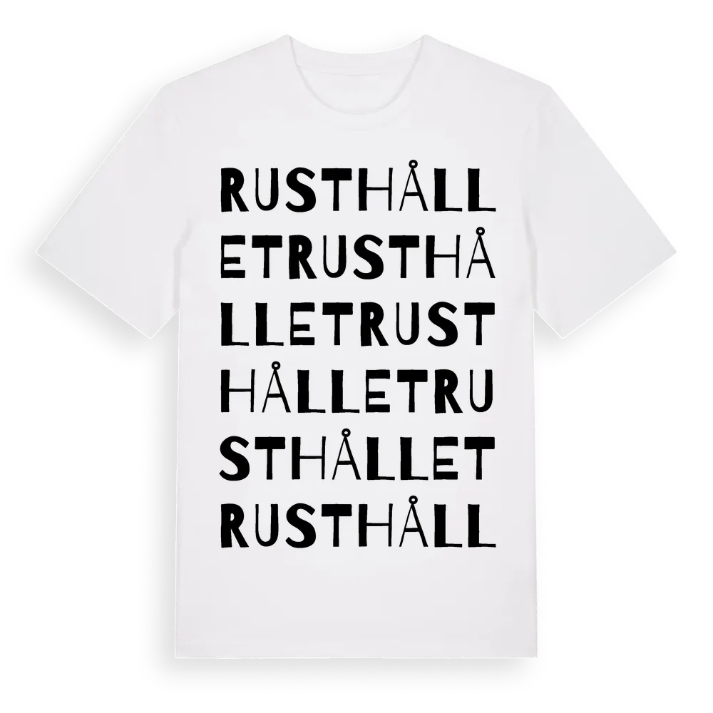 Rusthållet ordlek t-shirt är inspirerad av Rusthållet i Östergötlands län, Sverige. Tröjan är designad för dig som har en speciell koppling till platsen – oavsett om du bor här, har rötterna här eller bara älskar Rusthållet.