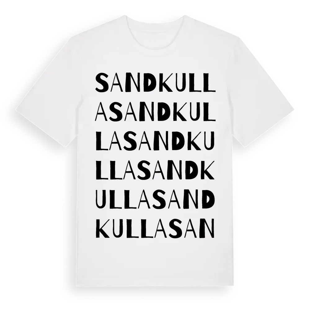 Sandkulla ordlek t-shirt är inspirerad av Sandkulla i Östergötlands län, Sverige. Tröjan är designad för dig som har en speciell koppling till platsen – oavsett om du bor här, har rötterna här eller bara älskar Sandkulla.