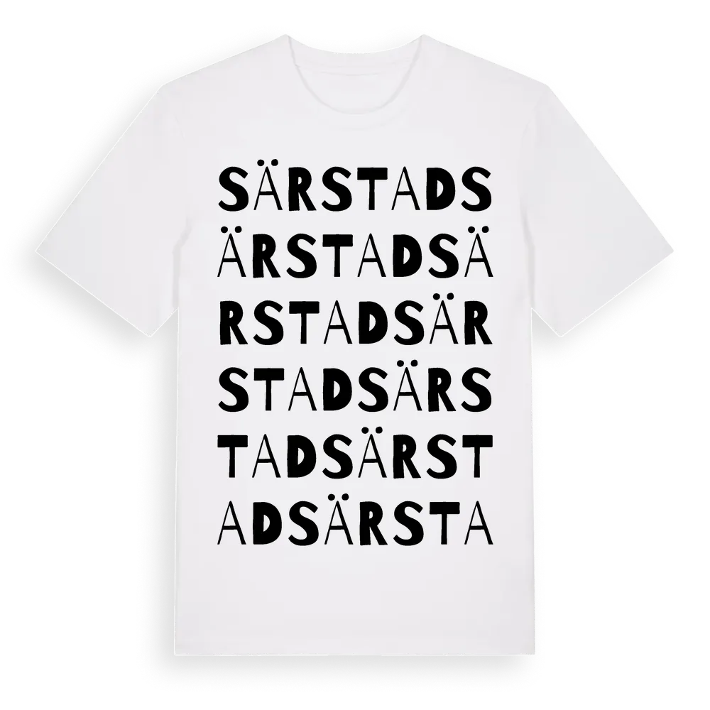 Särstad ordlek t-shirt är inspirerad av byn Särstad i Östergötlands län, Sverige. Tröjan är designad för dig som har en speciell koppling till platsen – oavsett om du bor här, har rötterna här eller bara älskar Särstad.