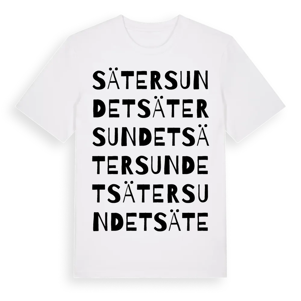 Sätersundet ordlek t-shirt är inspirerad av Sätersundet i Östergötlands län, Sverige. Tröjan är designad för dig som har en speciell koppling till platsen – oavsett om du bor här, har rötterna här eller bara älskar Sätersundet.