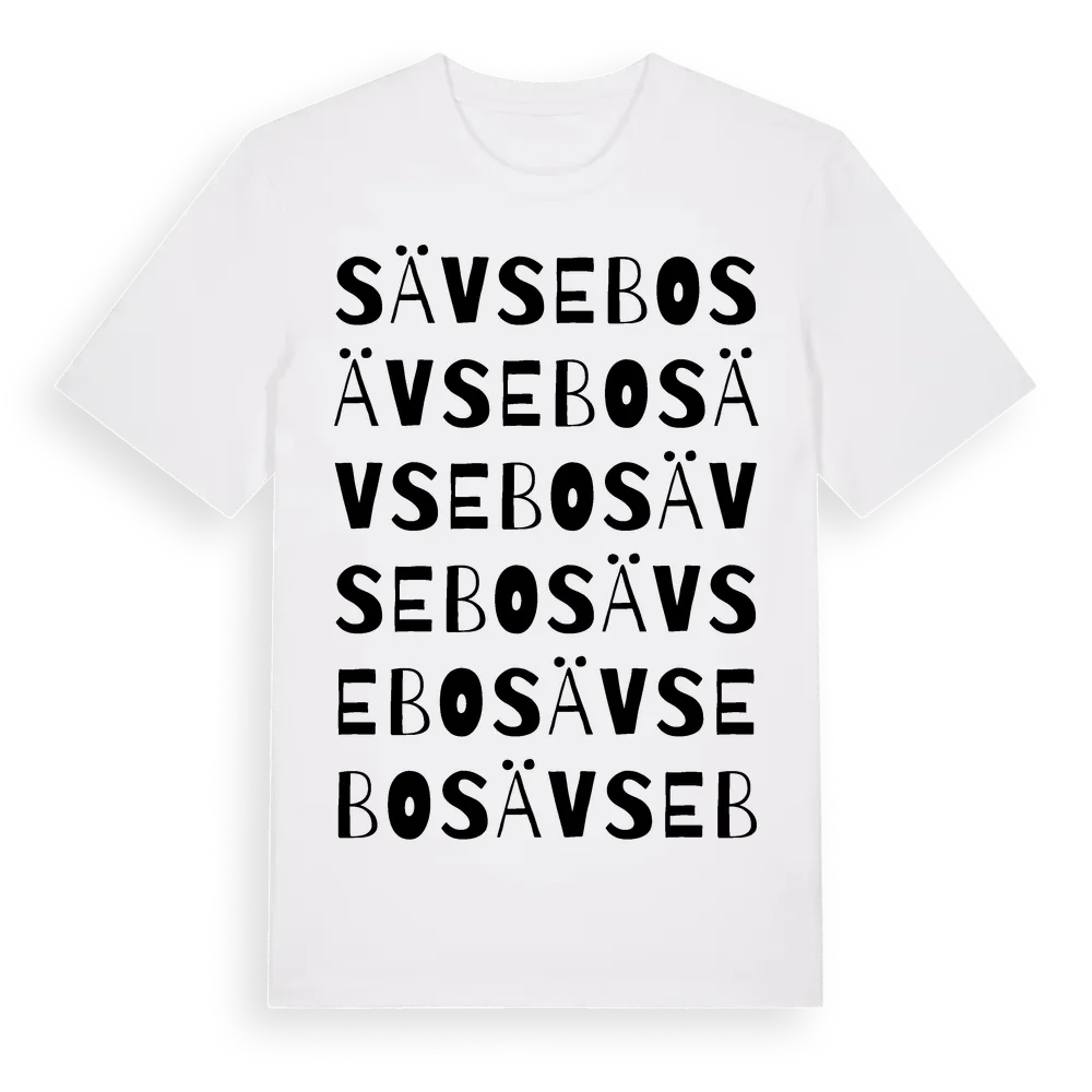 Sävsebo ordlek t-shirt är inspirerad av Sävsebo i Östergötlands län, Sverige. Tröjan är designad för dig som har en speciell koppling till platsen – oavsett om du bor här, har rötterna här eller bara älskar Sävsebo.