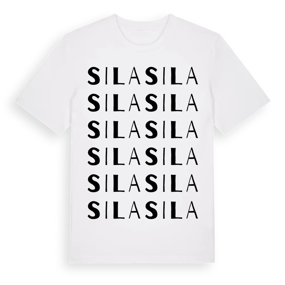 Sila ordlek t-shirt är inspirerad av byn Sila i Östergötlands län, Sverige. Tröjan är designad för dig som har en speciell koppling till platsen – oavsett om du bor här, har rötterna här eller bara älskar Sila.