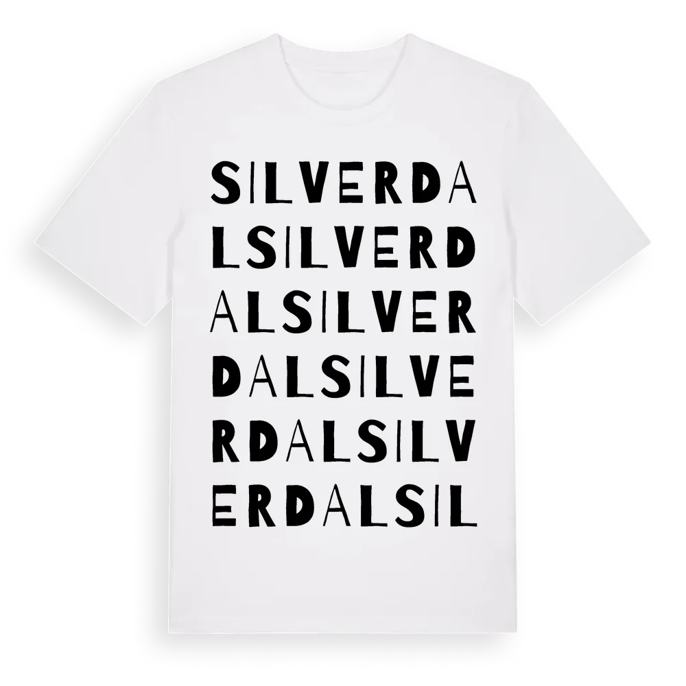 Silverdal ordlek t-shirt är inspirerad av Silverdal i Östergötlands län, Sverige. Tröjan är designad för dig som har en speciell koppling till platsen – oavsett om du bor här, har rötterna här eller bara älskar Silverdal.
