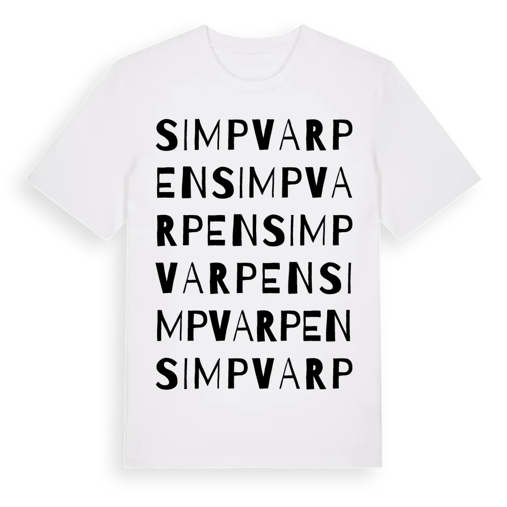 Simpvarpen ordlek t-shirt är inspirerad av Simpvarpen i Östergötlands län, Sverige. Tröjan är designad för dig som har en speciell koppling till platsen – oavsett om du bor här, har rötterna här eller bara älskar Simpvarpen.
