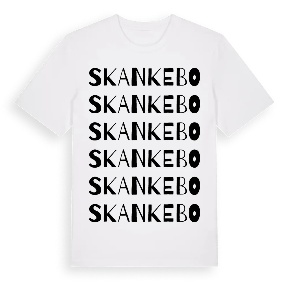Skankebo ordlek t-shirt är inspirerad av byn Skankebo i Östergötlands län, Sverige. Tröjan är designad för dig som har en speciell koppling till platsen – oavsett om du bor här, har rötterna här eller bara älskar Skankebo.