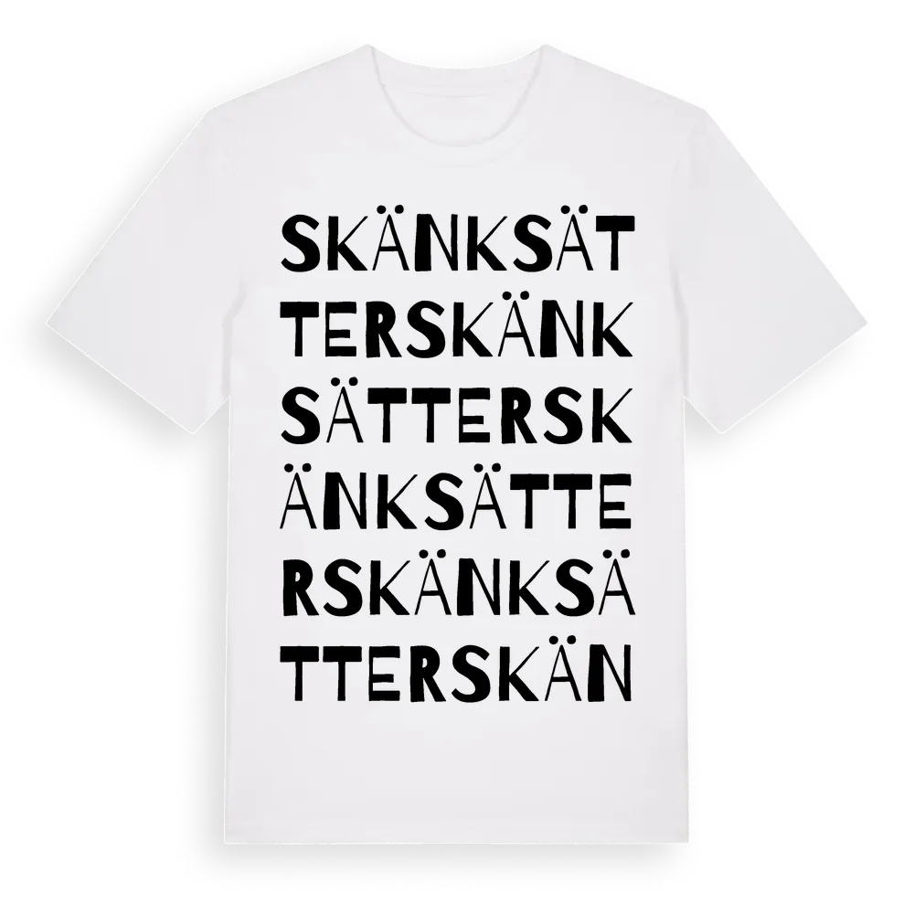 Skänksätter ordlek t-shirt är inspirerad av Skänksätter i Östergötlands län, Sverige. Tröjan är designad för dig som har en speciell koppling till platsen – oavsett om du bor här, har rötterna här eller bara älskar Skänksätter.