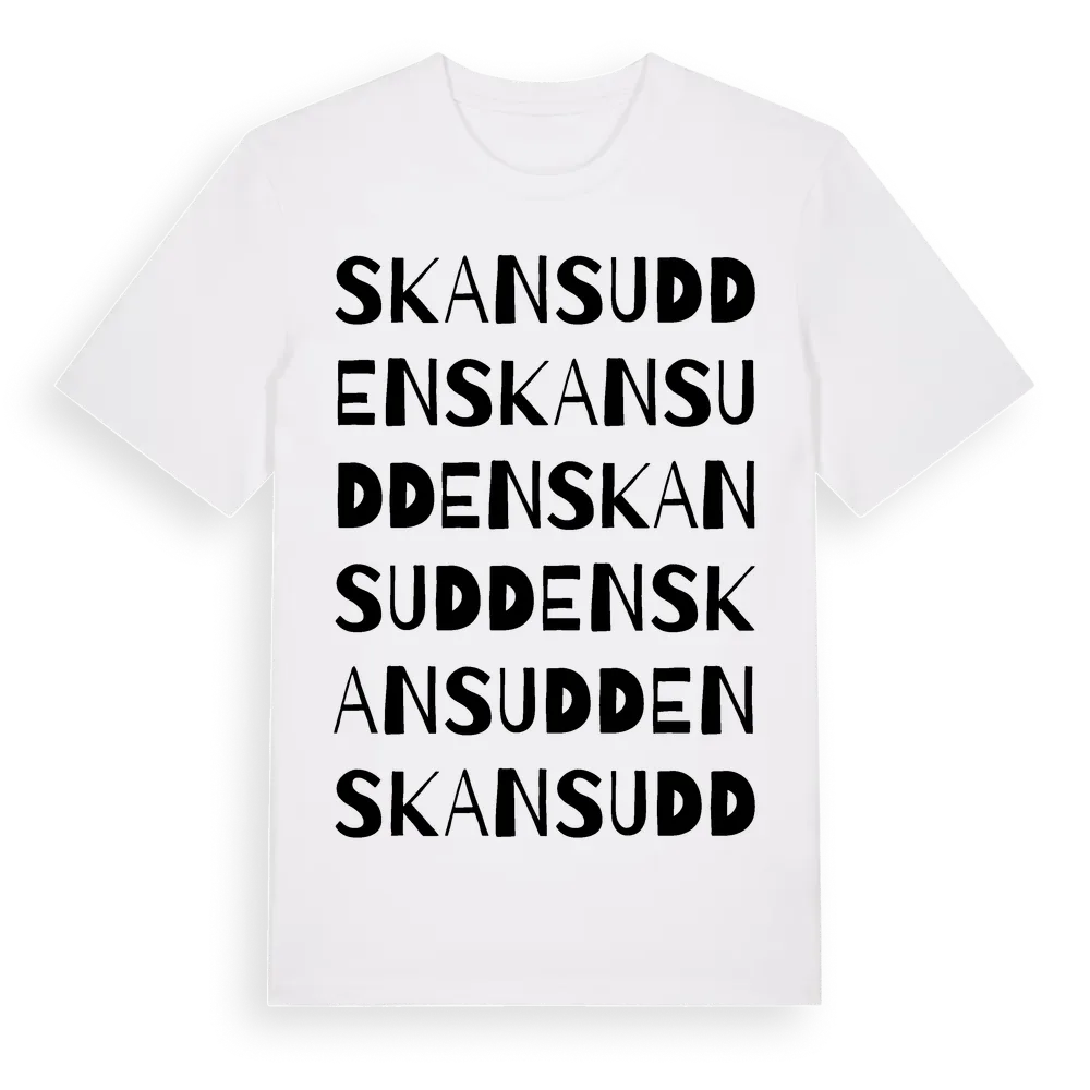 Skansudden ordlek t-shirt är inspirerad av Skansudden i Östergötlands län, Sverige. Tröjan är designad för dig som har en speciell koppling till platsen – oavsett om du bor här, har rötterna här eller bara älskar Skansudden.