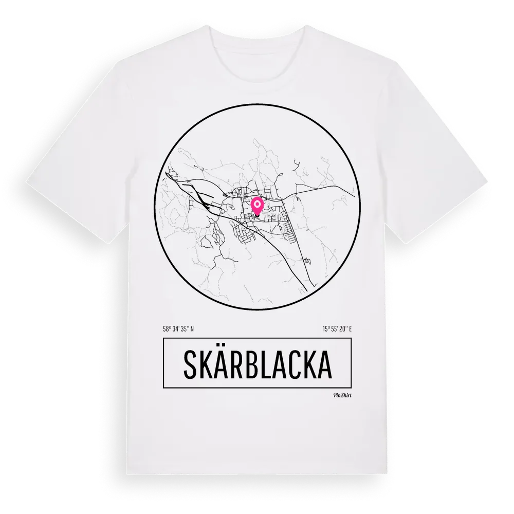 Skärblacka t-shirt är inspirerad av byn Skärblacka i Östergötlands län, Sverige. Tröjan är designad för dig som har en speciell koppling till platsen – oavsett om du bor här, har rötterna här eller bara älskar Skärblacka.