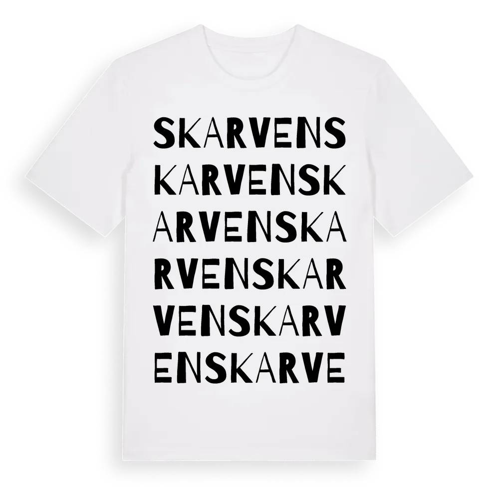 Skarven ordlek t-shirt är inspirerad av Skarven i Östergötlands län, Sverige. Tröjan är designad för dig som har en speciell koppling till platsen – oavsett om du bor här, har rötterna här eller bara älskar Skarven.
