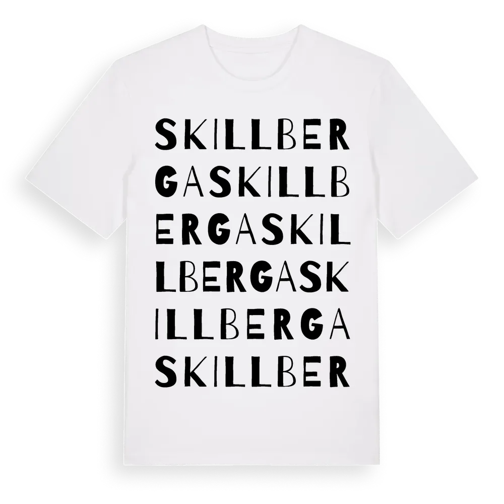 Skillberga ordlek t-shirt är inspirerad av Skillberga i Östergötlands län, Sverige. Tröjan är designad för dig som har en speciell koppling till platsen – oavsett om du bor här, har rötterna här eller bara älskar Skillberga.