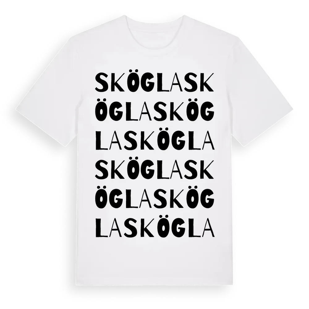 En ordlek byggd på Sköglas namn. Subtilt och klurig – ett motiv som bara de som verkligen känner platsen fullt ut förstår. Premium bomull, unisex – från Skögla i Östergötlands län.