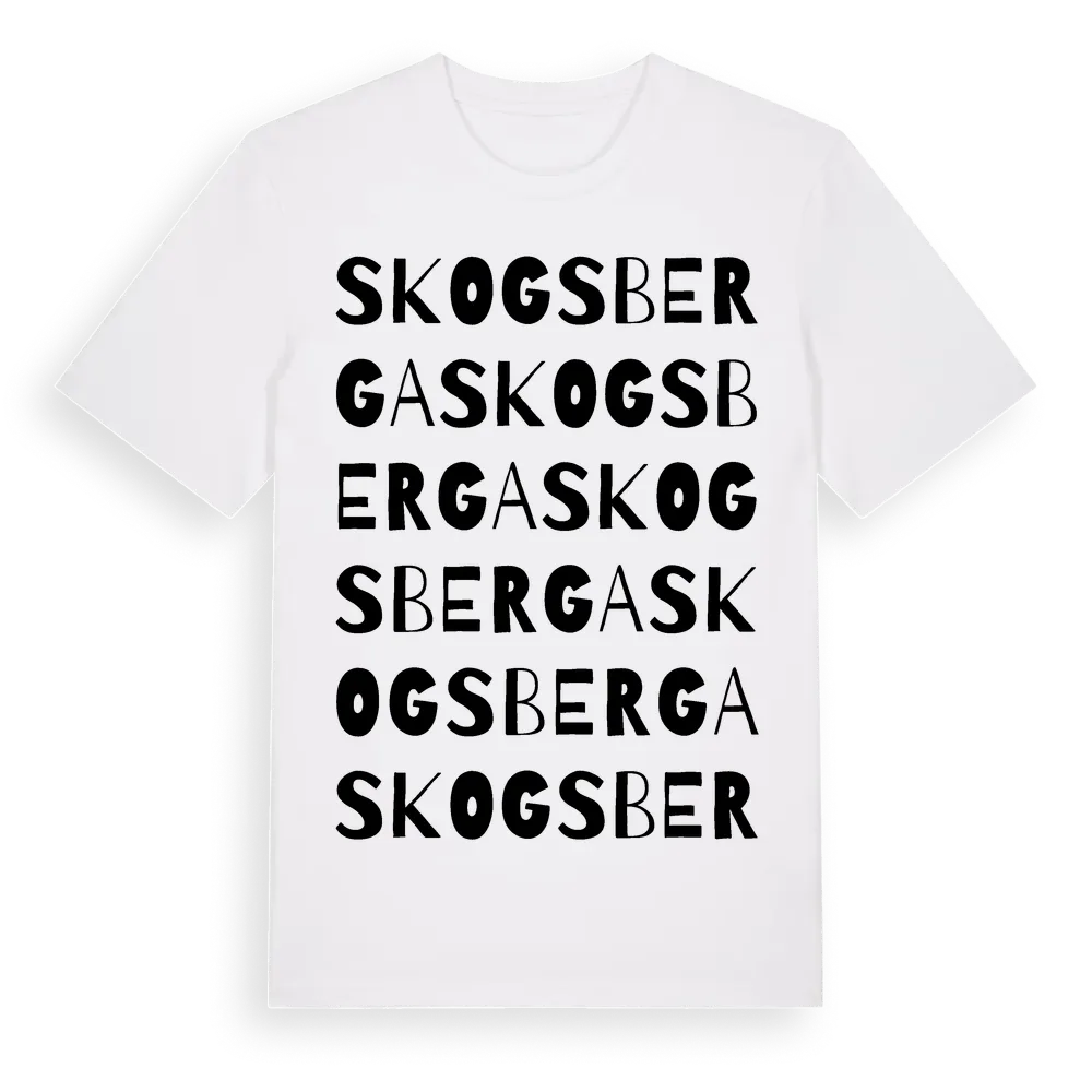 Skogsberga ordlek t-shirt är inspirerad av Skogsberga i Östergötlands län, Sverige. Tröjan är designad för dig som har en speciell koppling till platsen – oavsett om du bor här, har rötterna här eller bara älskar Skogsberga.
