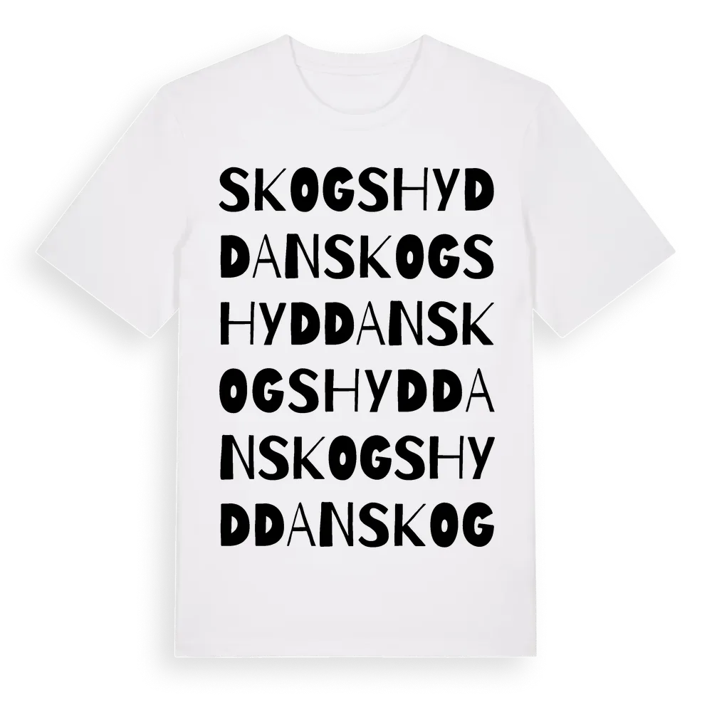 Skogshyddan ordlek t-shirt är inspirerad av Skogshyddan i Östergötlands län, Sverige. Tröjan är designad för dig som har en speciell koppling till platsen – oavsett om du bor här, har rötterna här eller bara älskar Skogshyddan.