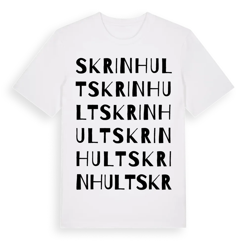 Skrinhult ordlek t-shirt är inspirerad av byn Skrinhult i Östergötlands län, Sverige. Tröjan är designad för dig som har en speciell koppling till platsen – oavsett om du bor här, har rötterna här eller bara älskar Skrinhult.