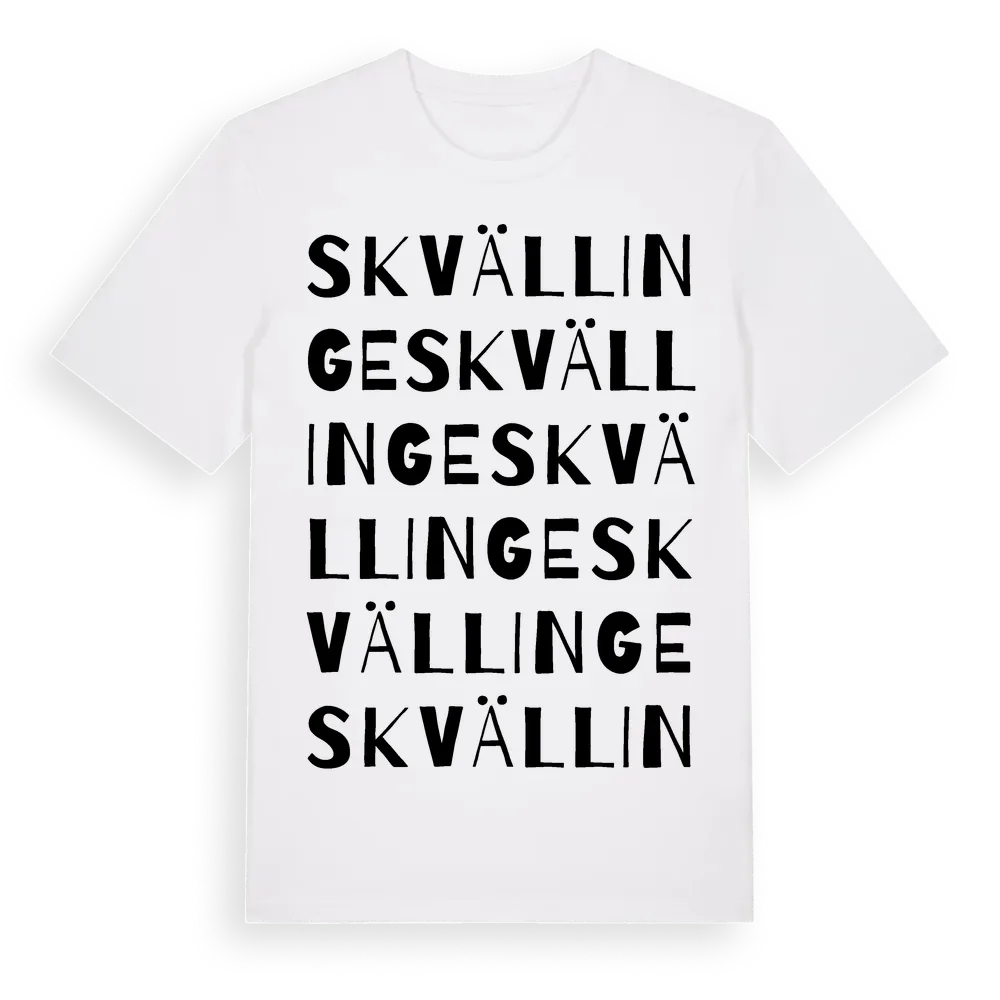 Skvällinge ordlek t-shirt är inspirerad av byn Skvällinge i Östergötlands län, Sverige. Tröjan är designad för dig som har en speciell koppling till platsen – oavsett om du bor här, har rötterna här eller bara älskar Skvällinge.