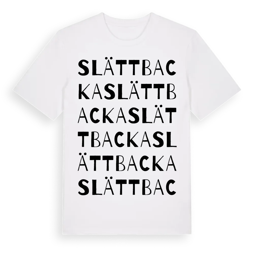 Slättbacka ordlek t-shirt är inspirerad av Slättbacka i Östergötlands län, Sverige. Tröjan är designad för dig som har en speciell koppling till platsen – oavsett om du bor här, har rötterna här eller bara älskar Slättbacka.