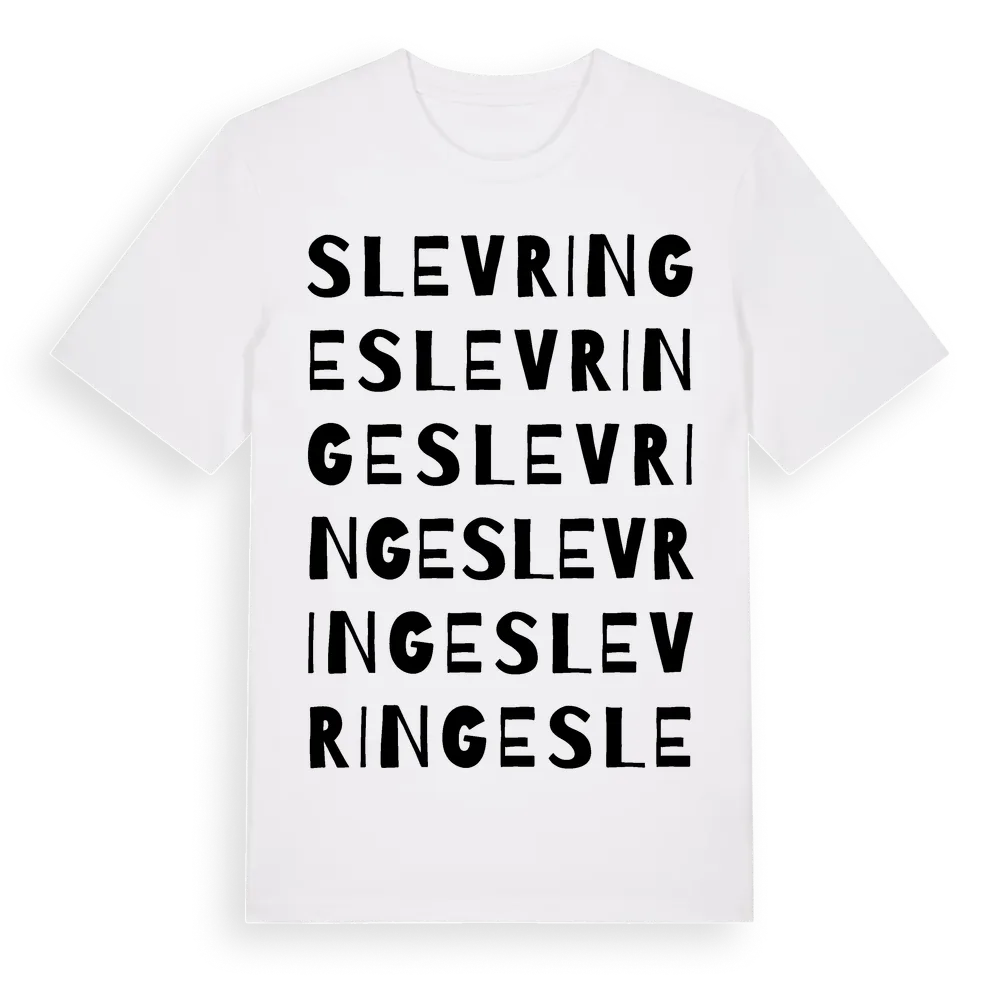 Slevringe ordlek t-shirt är inspirerad av Slevringe i Östergötlands län, Sverige. Tröjan är designad för dig som har en speciell koppling till platsen – oavsett om du bor här, har rötterna här eller bara älskar Slevringe.