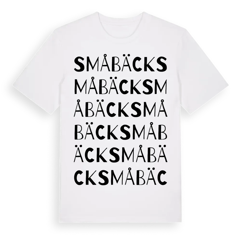 Småbäck ordlek t-shirt är inspirerad av Småbäck i Östergötlands län, Sverige. Tröjan är designad för dig som har en speciell koppling till platsen – oavsett om du bor här, har rötterna här eller bara älskar Småbäck.