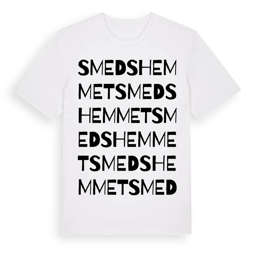 Smedshemmet ordlek t-shirt är inspirerad av Smedshemmet i Östergötlands län, Sverige. Tröjan är designad för dig som har en speciell koppling till platsen – oavsett om du bor här, har rötterna här eller bara älskar Smedshemmet.