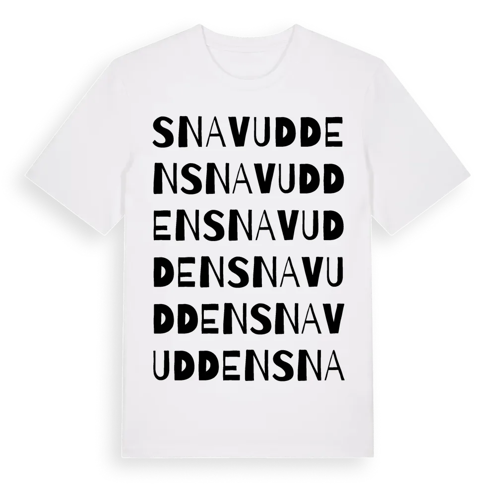 Snavudden ordlek t-shirt är inspirerad av byn Snavudden i Östergötlands län, Sverige. Tröjan är designad för dig som har en speciell koppling till platsen – oavsett om du bor här, har rötterna här eller bara älskar Snavudden.