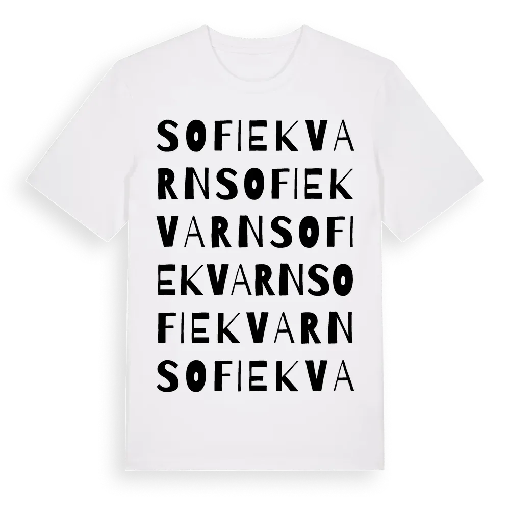Sofiekvarn ordlek t-shirt är inspirerad av Sofiekvarn i Östergötlands län, Sverige. Tröjan är designad för dig som har en speciell koppling till platsen – oavsett om du bor här, har rötterna här eller bara älskar Sofiekvarn.