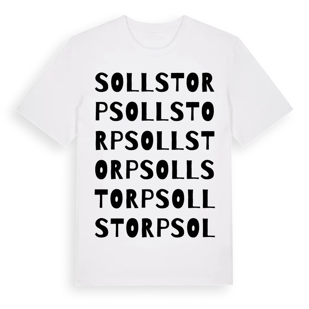 Sollstorp ordlek t-shirt är inspirerad av byn Sollstorp i Östergötlands län, Sverige. Tröjan är designad för dig som har en speciell koppling till platsen – oavsett om du bor här, har rötterna här eller bara älskar Sollstorp.