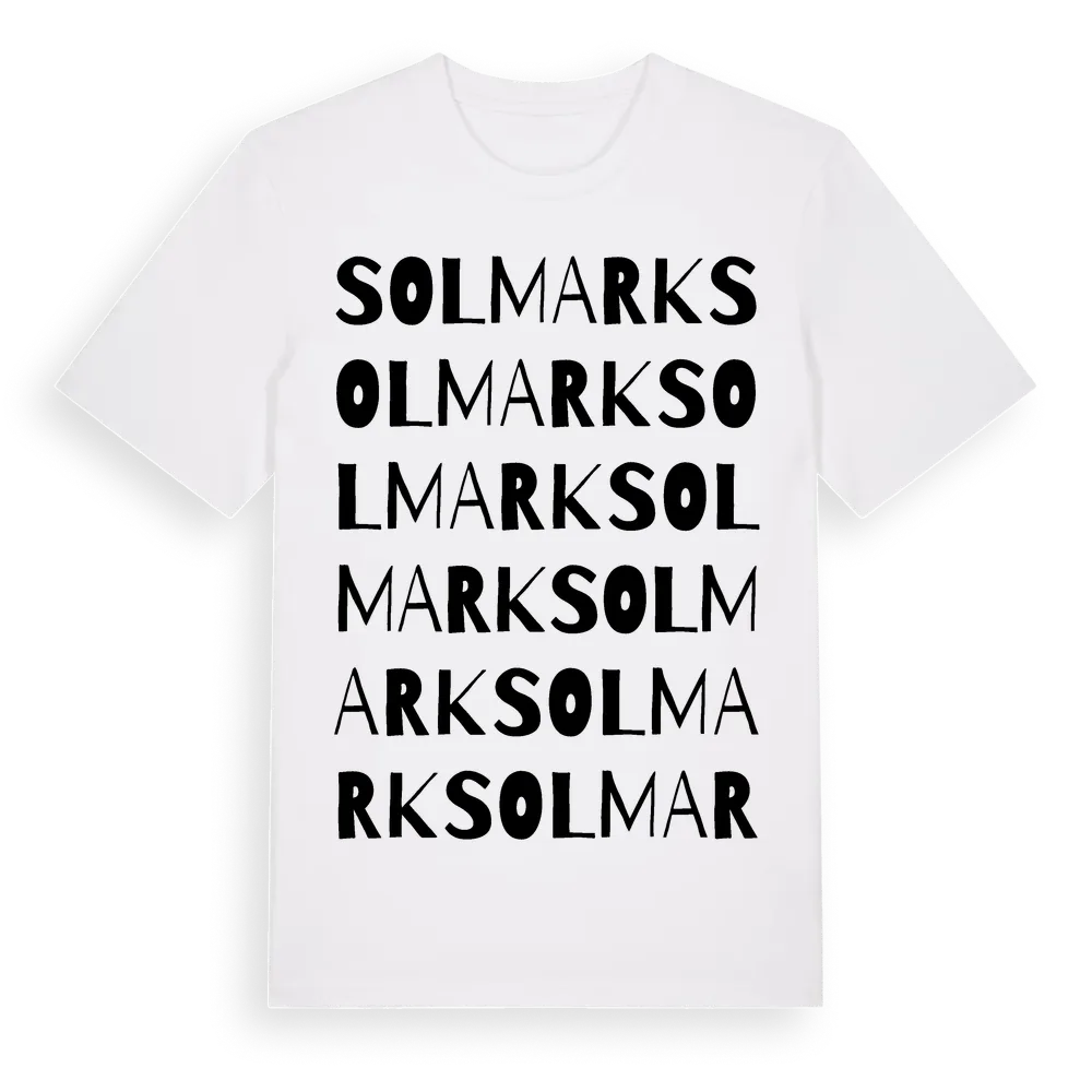 Solmark ordlek t-shirt är inspirerad av Solmark i Östergötlands län, Sverige. Tröjan är designad för dig som har en speciell koppling till platsen – oavsett om du bor här, har rötterna här eller bara älskar Solmark.