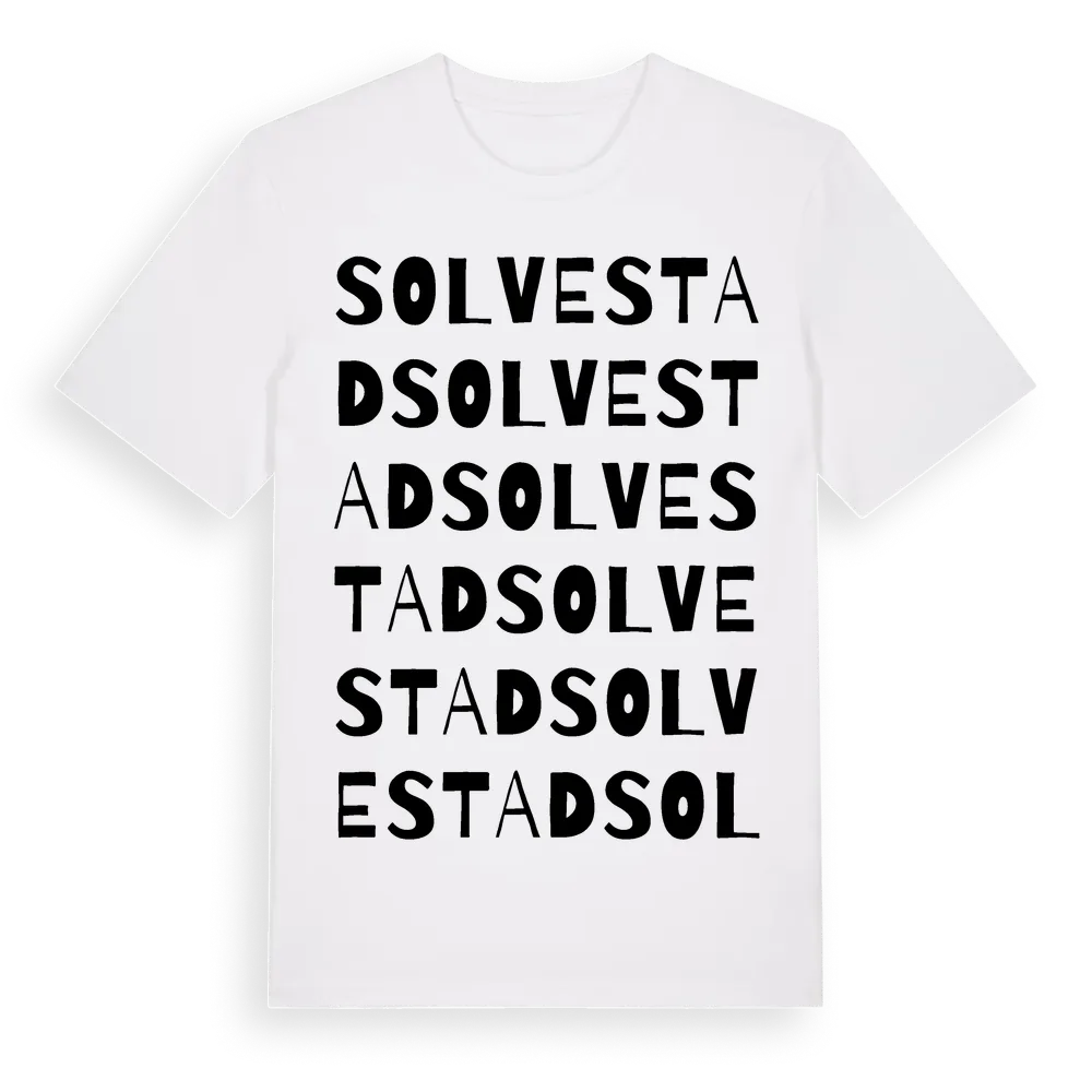 Solvestad ordlek t-shirt är inspirerad av byn Solvestad i Östergötlands län, Sverige. Tröjan är designad för dig som har en speciell koppling till platsen – oavsett om du bor här, har rötterna här eller bara älskar Solvestad.
