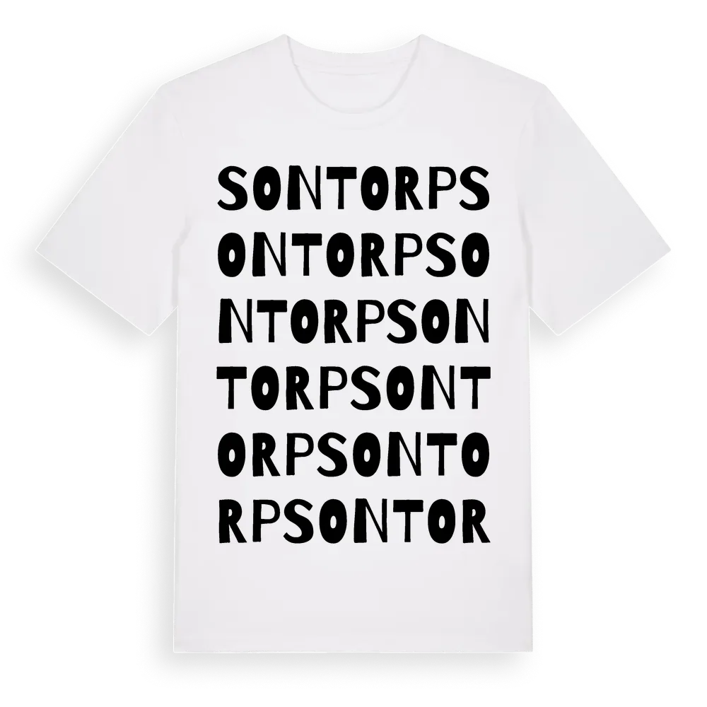 Sontorp ordlek t-shirt är inspirerad av byn Sontorp i Östergötlands län, Sverige. Tröjan är designad för dig som har en speciell koppling till platsen – oavsett om du bor här, har rötterna här eller bara älskar Sontorp.