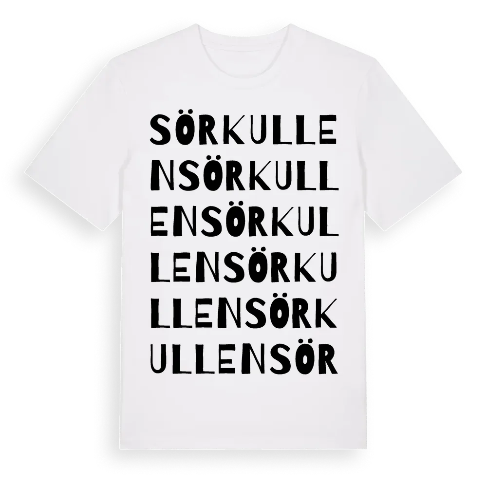 Sörkullen ordlek t-shirt är inspirerad av Sörkullen i Östergötlands län, Sverige. Tröjan är designad för dig som har en speciell koppling till platsen – oavsett om du bor här, har rötterna här eller bara älskar Sörkullen.