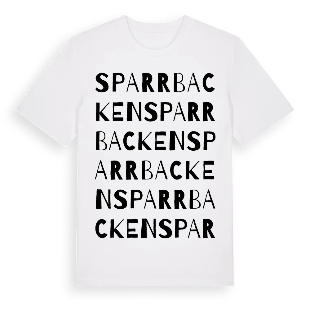 Sparrbacken ordlek t-shirt är inspirerad av Sparrbacken i Östergötlands län, Sverige. Tröjan är designad för dig som har en speciell koppling till platsen – oavsett om du bor här, har rötterna här eller bara älskar Sparrbacken.