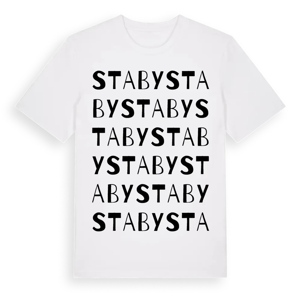 En ordlek byggd på Stabys namn. Subtilt och klurig – ett motiv som bara de som verkligen känner platsen fullt ut förstår. Premium bomull, unisex – från Staby i Östergötlands län.