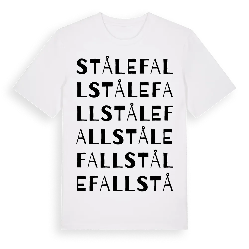 Stålefall ordlek t-shirt är inspirerad av byn Stålefall i Östergötlands län, Sverige. Tröjan är designad för dig som har en speciell koppling till platsen – oavsett om du bor här, har rötterna här eller bara älskar Stålefall.