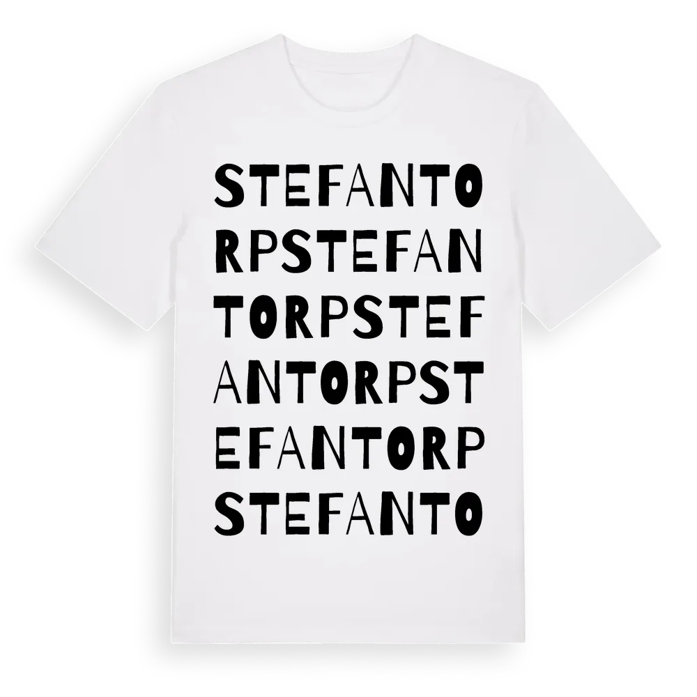 Stefantorp ordlek t-shirt är inspirerad av Stefantorp i Östergötlands län, Sverige. Tröjan är designad för dig som har en speciell koppling till platsen – oavsett om du bor här, har rötterna här eller bara älskar Stefantorp.