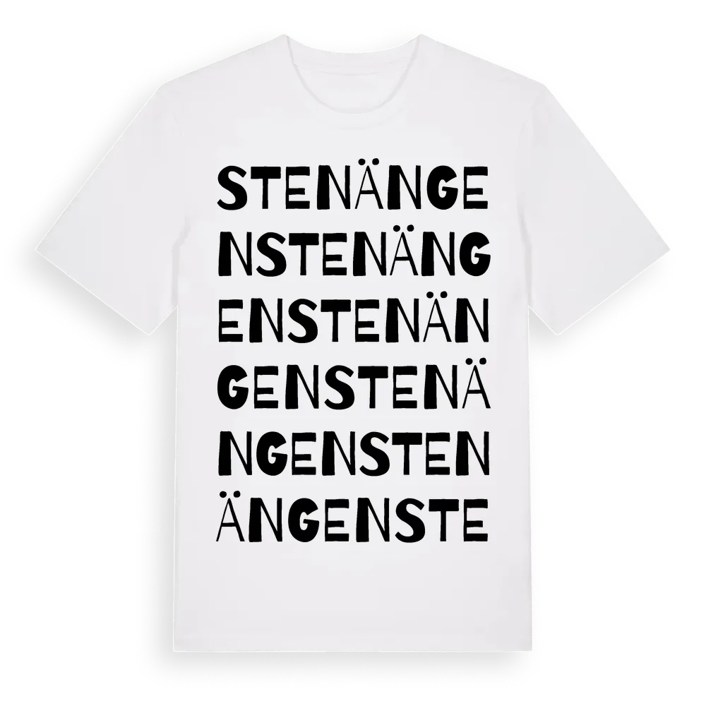 Stenängen ordlek t-shirt är inspirerad av Stenängen i Östergötlands län, Sverige. Tröjan är designad för dig som har en speciell koppling till platsen – oavsett om du bor här, har rötterna här eller bara älskar Stenängen.