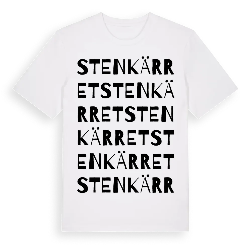 Stenkärret ordlek t-shirt är inspirerad av Stenkärret i Östergötlands län, Sverige. Tröjan är designad för dig som har en speciell koppling till platsen – oavsett om du bor här, har rötterna här eller bara älskar Stenkärret.