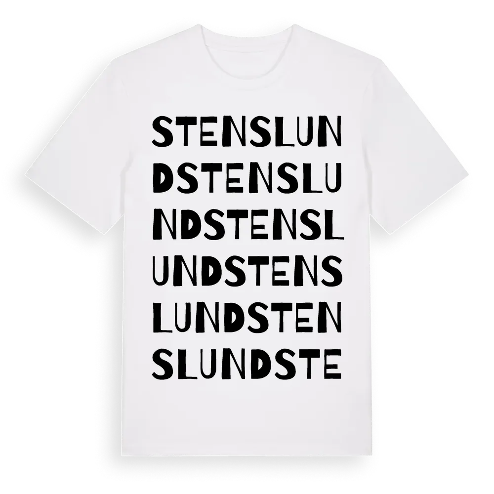 Stenslund ordlek t-shirt är inspirerad av Stenslund i Östergötlands län, Sverige. Tröjan är designad för dig som har en speciell koppling till platsen – oavsett om du bor här, har rötterna här eller bara älskar Stenslund.