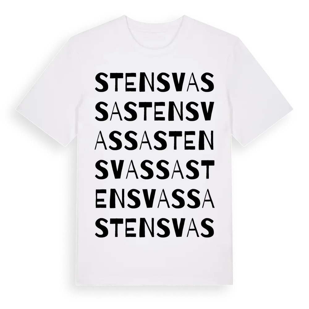 Stensvassa ordlek t-shirt är inspirerad av Stensvassa i Östergötlands län, Sverige. Tröjan är designad för dig som har en speciell koppling till platsen – oavsett om du bor här, har rötterna här eller bara älskar Stensvassa.