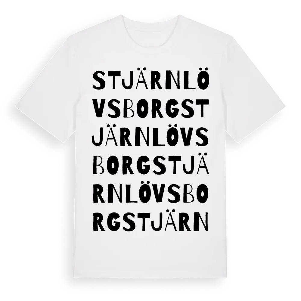 Stjärnlövsborg ordlek t-shirt är inspirerad av Stjärnlövsborg i Östergötlands län, Sverige. Tröjan är designad för dig som har en speciell koppling till platsen – oavsett om du bor här, har rötterna här eller bara älskar Stjärnlövsborg.