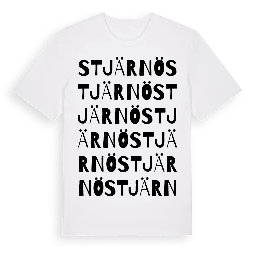 Stjärnö ordlek t-shirt är inspirerad av ön Stjärnö i Östergötlands län, Sverige. Tröjan är designad för dig som har en speciell koppling till platsen – oavsett om du bor här, har rötterna här eller bara älskar Stjärnö.