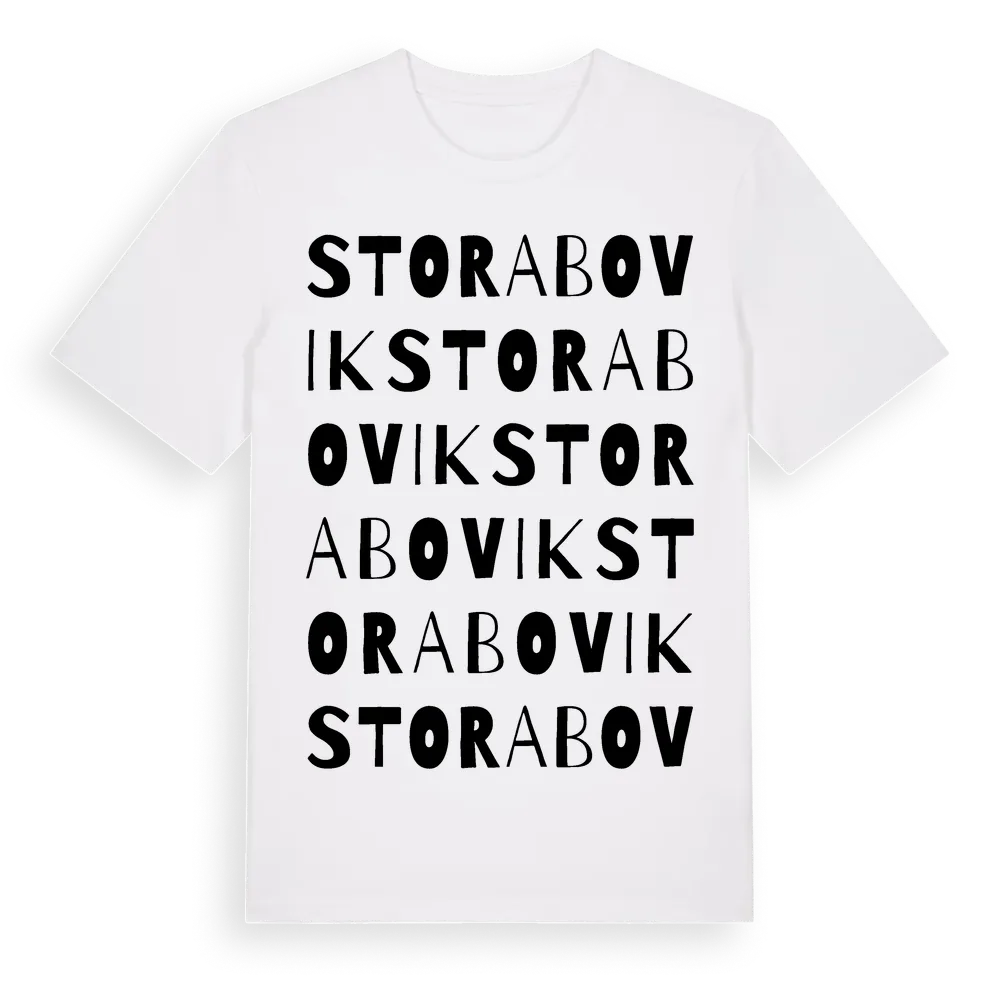 Stora Bovik ordlek t-shirt är inspirerad av Stora Bovik i Östergötlands län, Sverige. Tröjan är designad för dig som har en speciell koppling till platsen – oavsett om du bor här, har rötterna här eller bara älskar Stora Bovik.