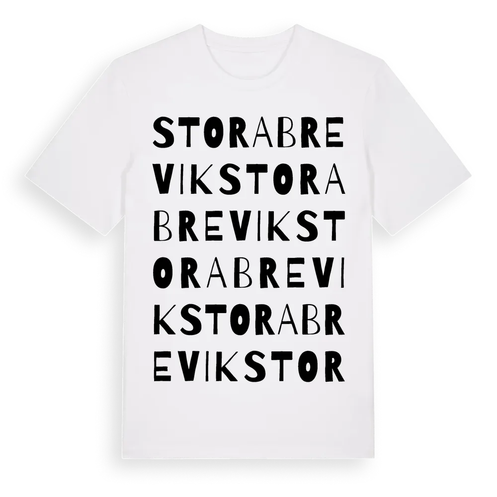 Stora Brevik ordlek t-shirt är inspirerad av Stora Brevik i Östergötlands län, Sverige. Tröjan är designad för dig som har en speciell koppling till platsen – oavsett om du bor här, har rötterna här eller bara älskar Stora Brevik.
