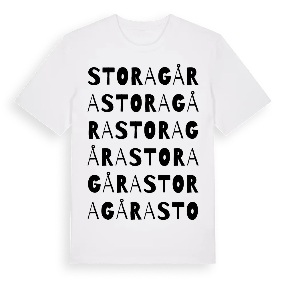 Stora Gåra ordlek t-shirt är inspirerad av Stora Gåra i Östergötlands län, Sverige. Tröjan är designad för dig som har en speciell koppling till platsen – oavsett om du bor här, har rötterna här eller bara älskar Stora Gåra.