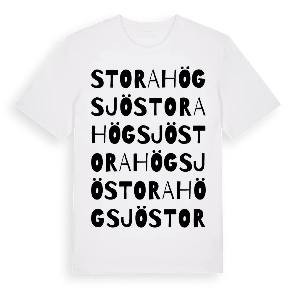 Stora Högsjö ordlek t-shirt är inspirerad av Stora Högsjö i Östergötlands län, Sverige. Tröjan är designad för dig som har en speciell koppling till platsen – oavsett om du bor här, har rötterna här eller bara älskar Stora Högsjö.