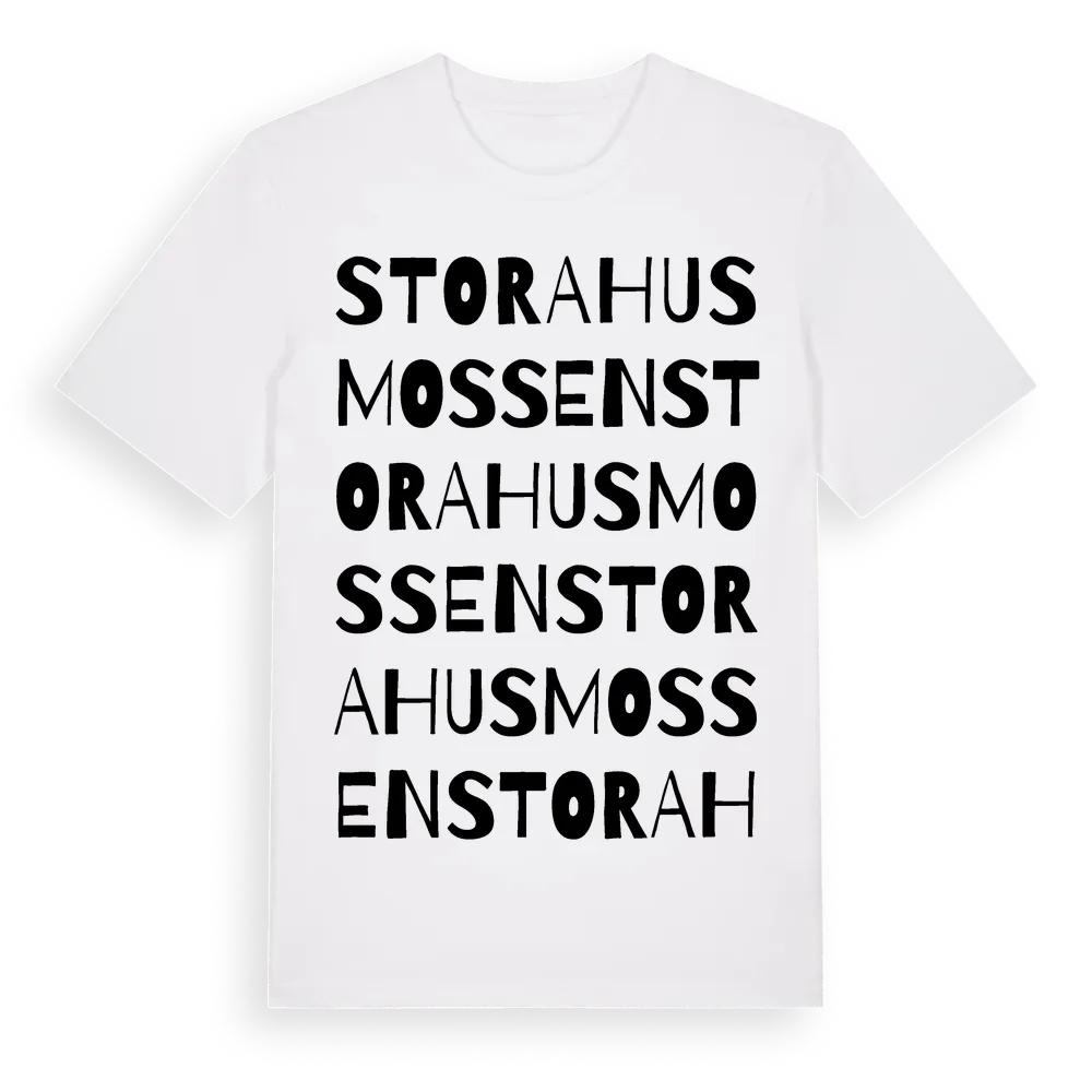 Stora Husmossen ordlek t-shirt är inspirerad av Stora Husmossen i Östergötlands län, Sverige. Tröjan är designad för dig som har en speciell koppling till platsen – oavsett om du bor här, har rötterna här eller bara älskar Stora Husmossen.
